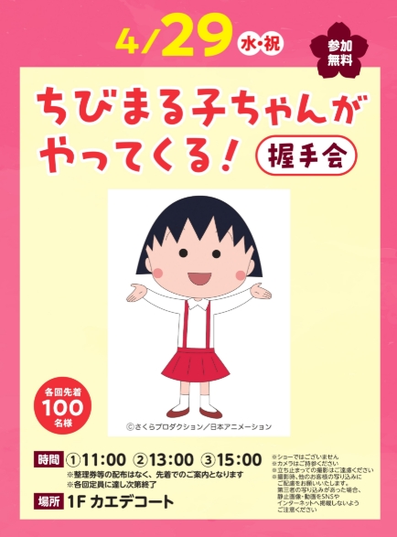 2026年4月29日(水祝) ①11:00 ②13:00 ③15:00 各回先着100名様