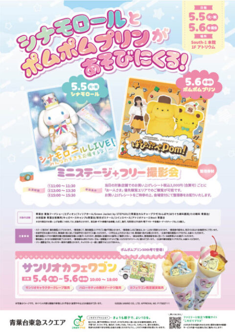 5月5日(火・祝)はシナモロール、5月6日(祝・振休)はポムポムプリンが登場!