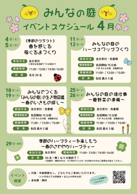 みんなの庭で、春を感じるハーブティーの試飲会を開催!普段忙しいあなたにこそ、芽吹く緑に囲まれて、深呼吸するような時間を。