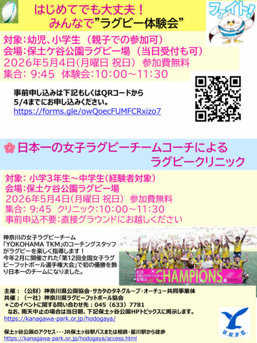 同時開催:日本一の女子ラグビーチームコーチによるラグビークリニック(経験者向け)