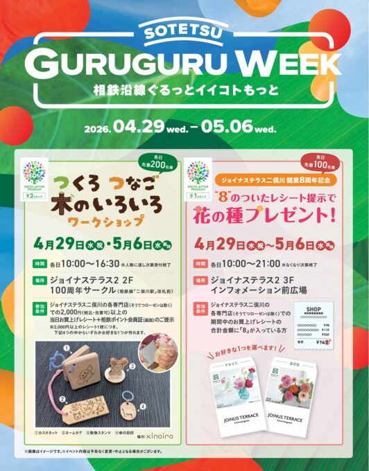 参加条件:ジョイナステラス二俣川の各専門店(そうてつローゼンは除く)での2,000円(税込・合算可)以上の当日お買い上げレシート+相鉄ポイント会員証(画面)のご提示