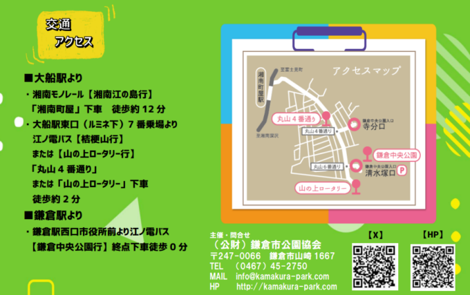 会場の鎌倉中央公園へは、大船駅からでも鎌倉駅からでもアクセスOK。湘南モノレールや江ノ電などを組み合わせて、会場へ向かうまでの道のりも楽しむのもいいですね♪