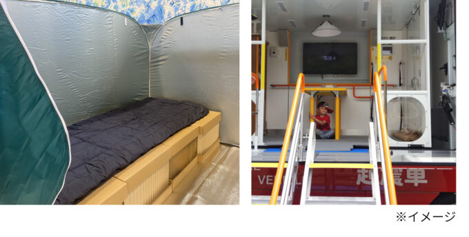 段ボールで作られたベッドやトイレを実際に使ったリアルな避難所体験やぺットボトルランタン作りなど、