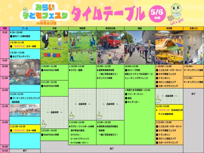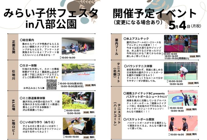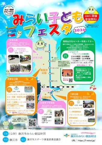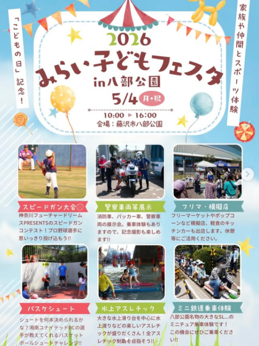 みらい子どもフェスタ2026:プール開放、水上アスレチック、スポーツ体験、ミニ鉄道運転会、など参加無料の楽しいイベント盛りだくさん!GWを近場で満喫しよう!![5月2日(土)~6日(水振):藤沢市内各所]
