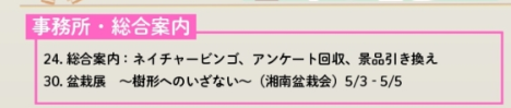 総合案内では、ネイチャービンゴやアンケートの回収、景品引き換えを行います。