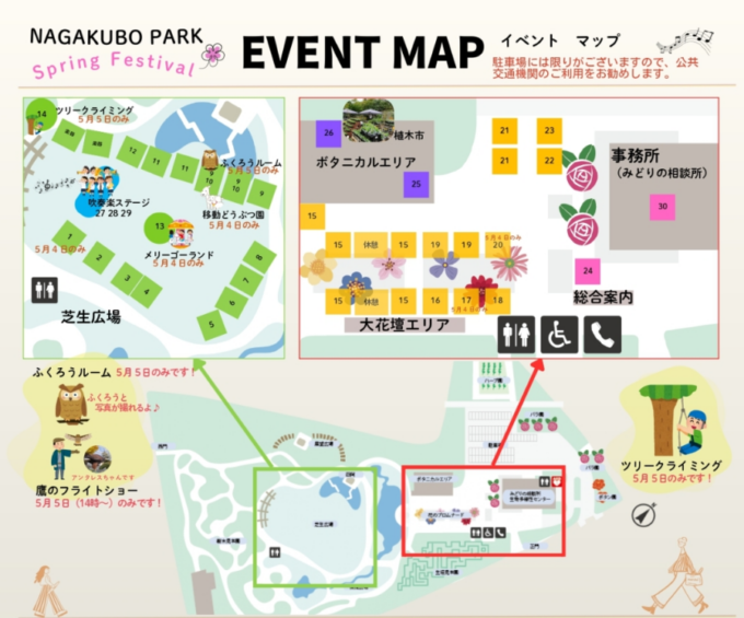 親子で楽しめるイベント盛りだくさん!!お出かけが気持ちいい季節、ぜひ、新緑やお花を楽しみながら、いろいろなイベントに参加してみてくださいね!!